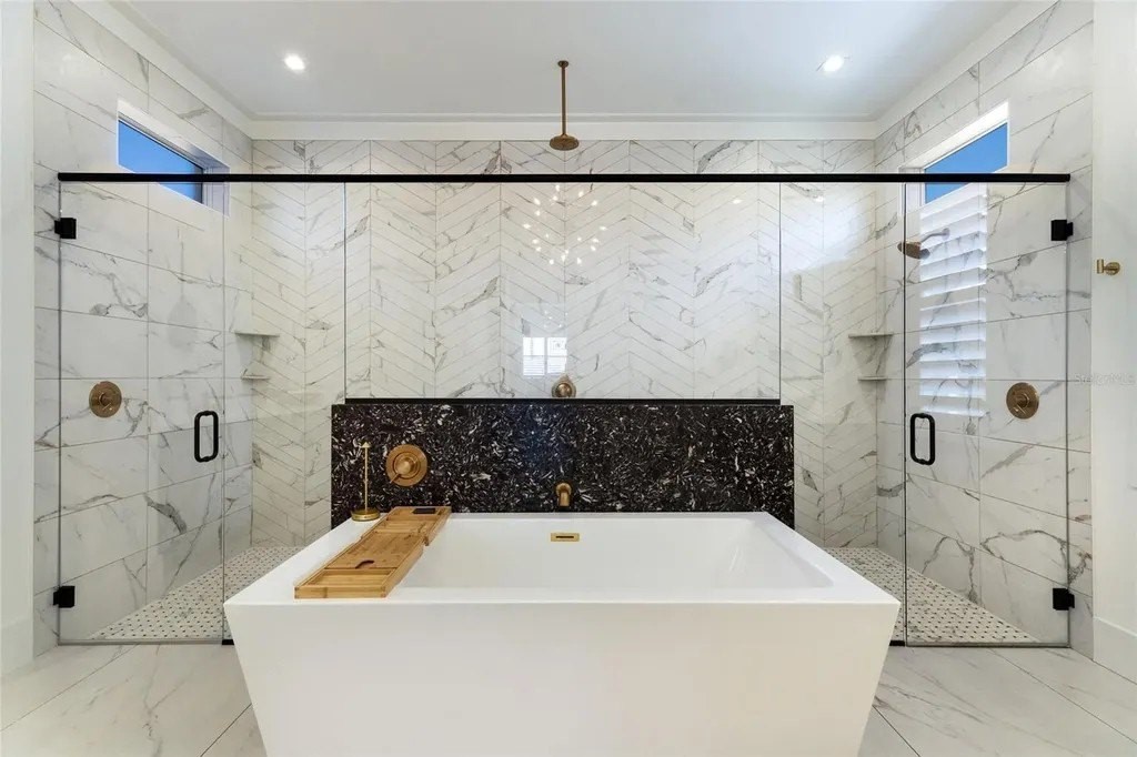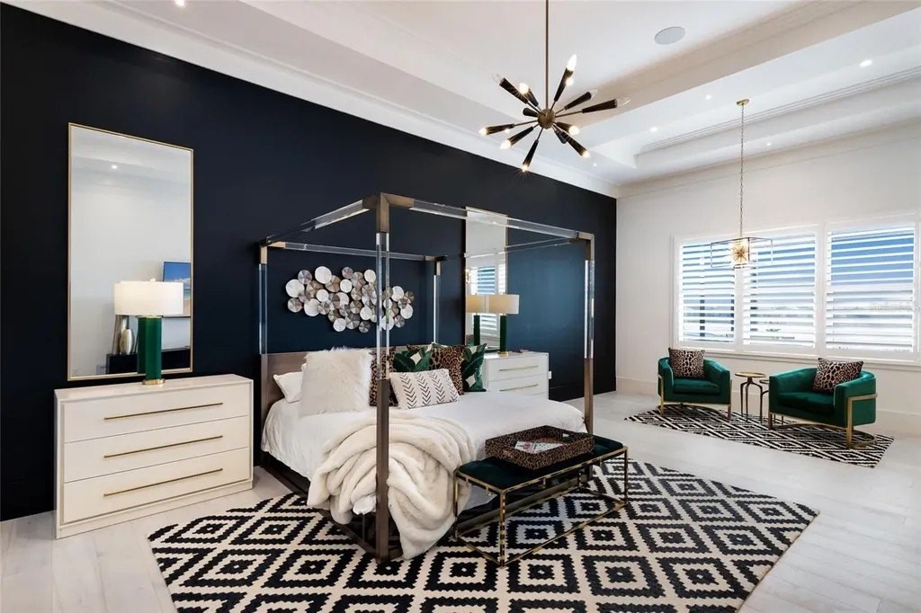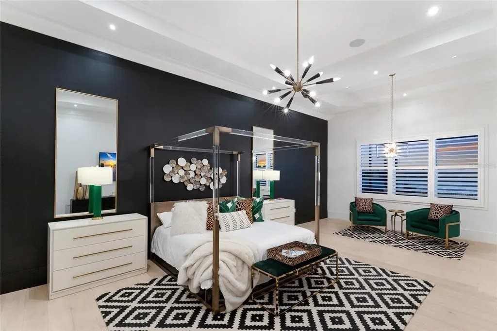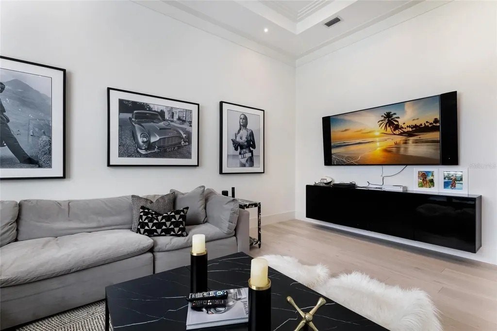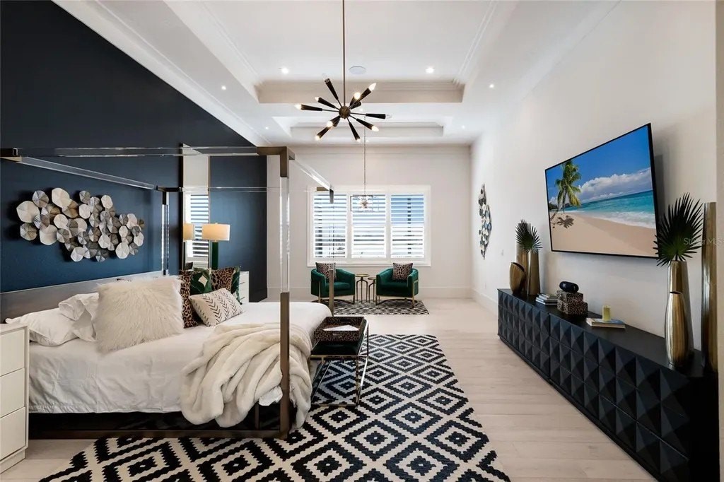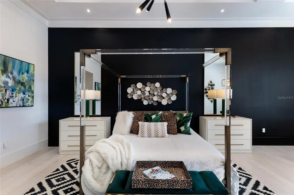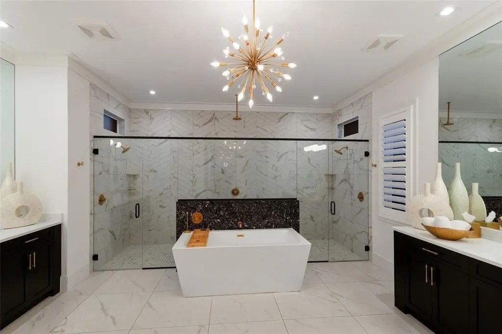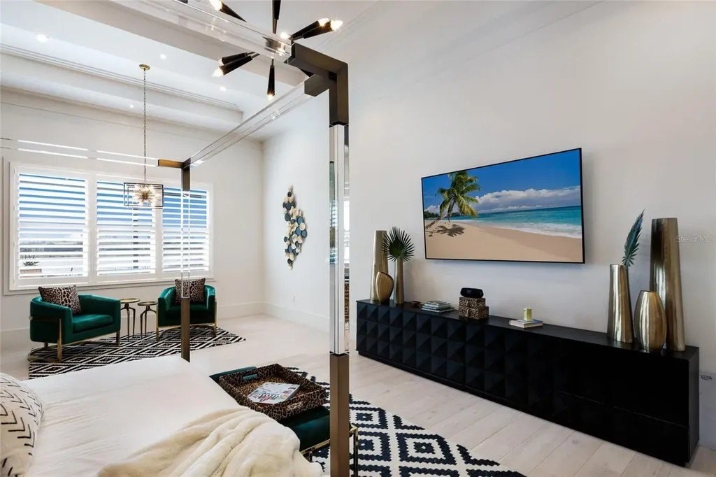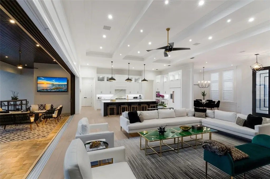 A stately arrival sets the tone for this exceptional custom residence, thoughtfully positioned on over one acre within the gates of The Concession. Blending modern luxury with architectural refinement, the home offers a rare combination of privacy, elegance, and timeless design in one of Lakewood Ranch’s most exclusive communities. Custom double entry doors welcome you into a light-filled interior where engineered hardwood floors anchor the main living spaces and a dramatic wall of sliding glass doors frame serene water views, seamlessly connecting indoor and outdoor living. At the heart of the residence, the chef’s kitchen is both polished and highly functional, appointed with Monogram and Caf appliances and anchored by a generous statement quartz island that serves as both focal point and gathering space. Designed to flow effortlessly into the great room and outdoor living areas, the layout supports both elevated entertaining and comfortable everyday living. Architectural elements define the great room, where a custom-designed accent wall showcases intricate detailing, a sleek linear fireplace, and an oversized mounted television, creating a striking focal point that balances warmth with modern design. Tray ceilings throughout further enhance the home’s architectural character, while curated designer lighting, plantation shutters, and a newly installed outdoor surround sound system underscore the thoughtfully executed craftsmanship. The primary suite offers a private retreat of generous proportions, complete with a sitting area and dual custom walk-in closets. The spa-inspired bath features expansive dual vanities, a soaking tub, and a dramatic walk-through shower with triple shower heads, including an overhead rain feature delivering a resort-caliber experience. Two additional guest suites each offer beautifully appointed en-suite baths with elevated design selections tailored for today’s discerning buyer. A private office with oversized windows invites abundant natural light, while the formal dining room is enhanced by a dramatic wine display that serves as a striking focal point for elegant entertaining. A spacious bonus room provides flexible space for recreation, media, or additional guest accommodations. Outdoors, the experience continues with a large pool and spa, expansive covered lanai, and a nicely appointed outdoor kitchen, creating a true resort-style setting. The five-car garage provides exceptional capacity for the automotive enthusiast and additional storage needs, while a fenced yard allows for secure outdoor enjoyment. Constructed with hurricane impact doors and windows throughout and supported by a whole-house generator, the home offers peace of mind with uncompromising quality. This residence masterfully blends functionality with a refined, designer-forward aesthetic, delivering privacy, security, and elevated living. Located just minutes from UTC, Waterside dining and shopping, and the Gulf Coast’s renowned beaches, it offers proximity to everything while maintaining an atmosphere of serene exclusivity. A distinguished offering for those seeking elevated luxury and the true Concession lifestyle.